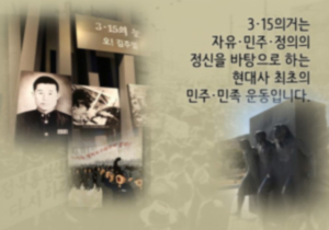 1960년 3월 15일 정ㆍ부통령 선거를 앞두고 자유당 정권은 사전 대리투표와 완장 부대를 동원한 공포 분위기 조성, 3인조, 5인조 묶음으로 공개투표, 일부 유권자에게 선거 번호표 미발급 등 부정선거를 통해 이승만 정권의 장기집권을 유지하려고 하였습니다. 이처럼 공공연한 부정선거가 목격되자 민주당은 선거 포기를 발표하였으며 이제까지 독재정권에 지쳐 있던 시민과 학생들은 부정선거와 독재정권에 반대하여 과감하게 들고일어났습니다. 시민과 학생들은 머리에 흰 띠를 두르고 부정선거를 규탄하며 “민주주의 만세”와 “자유당 정권 물러가라.”를 외치면서 거세게 항거하자 진압대는 최루탄과 위협사격으로 대응하였습니다. 시위는 밤까지 계속되어 새벽 3시경에야 멎었습니다.